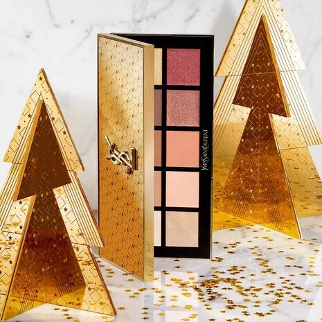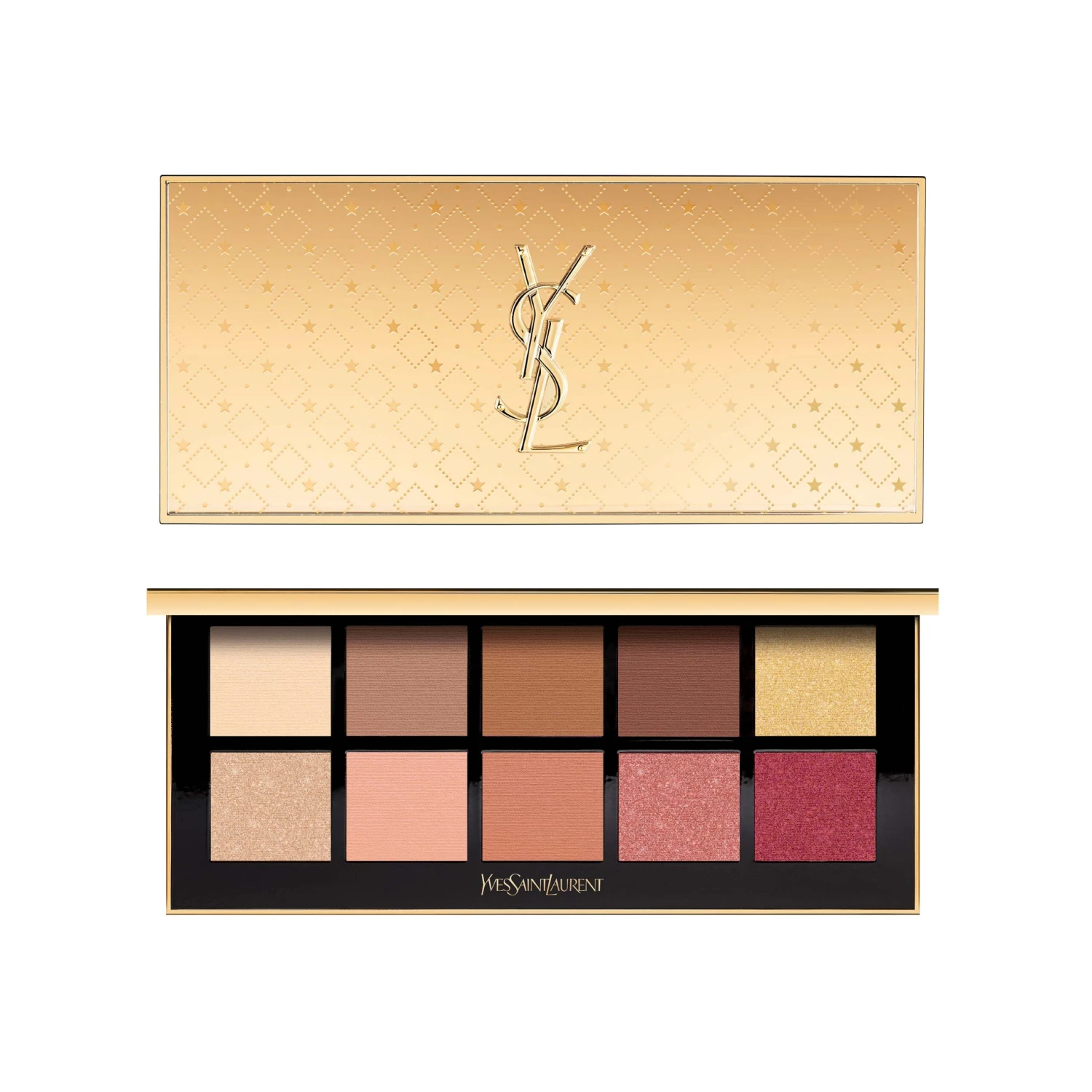 An eyeshadow palette in a limited-edition holiday pack with ten Desert Nude shades across shiny, metallic, and matte finishes inspired by Mr. Yves Saint Laurent’s fascination with the extreme desert environment: amber sand dunes, Moroccan copper, and bronze tan bodies. The blendable and highly pigmented formula is perfect for a quick single-shade monochrome look or dramatic smokey eye. The signature YSL packaging includes a couture chevron case with an expansive mirror to perfect eye makeup looks from every angle.