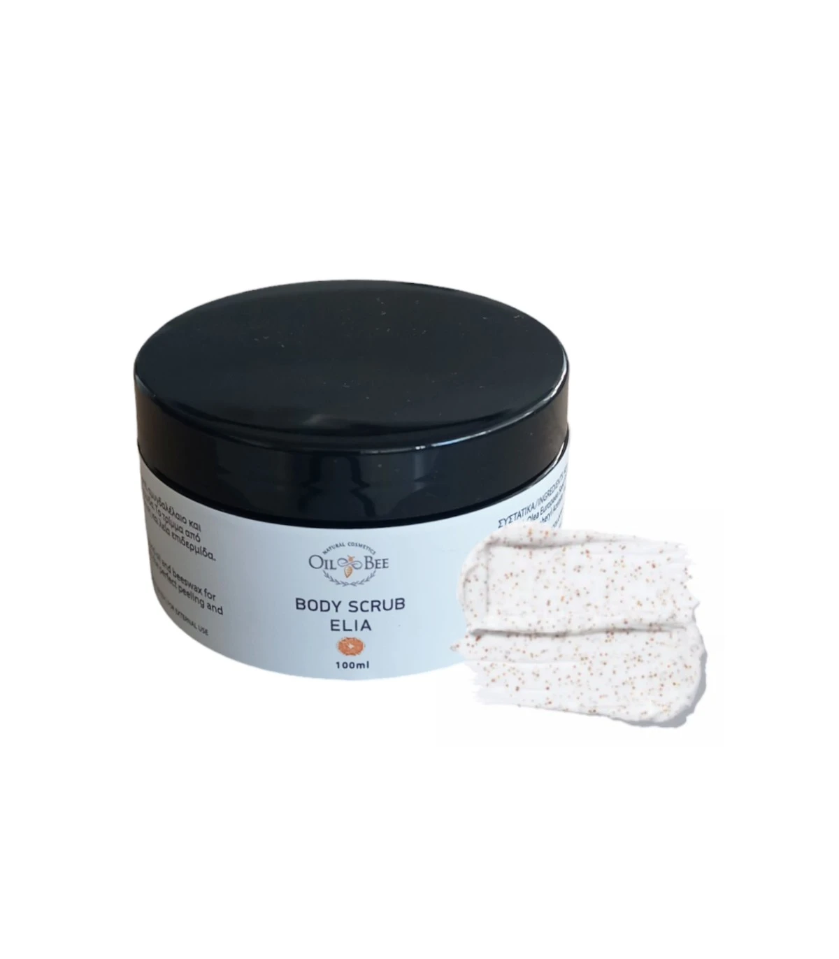 Απολεπιστικό Σώματος της OIL & BEE, με βούτυρο καριτέ και Αμυγδαλέλαιο. Περιέχει τρίμμα από κουκούτσι ελιάς για βαθιά απολέπιση και αφήνει στο σώμα ένα υπέροχο άρωμα πορτοκάλι.