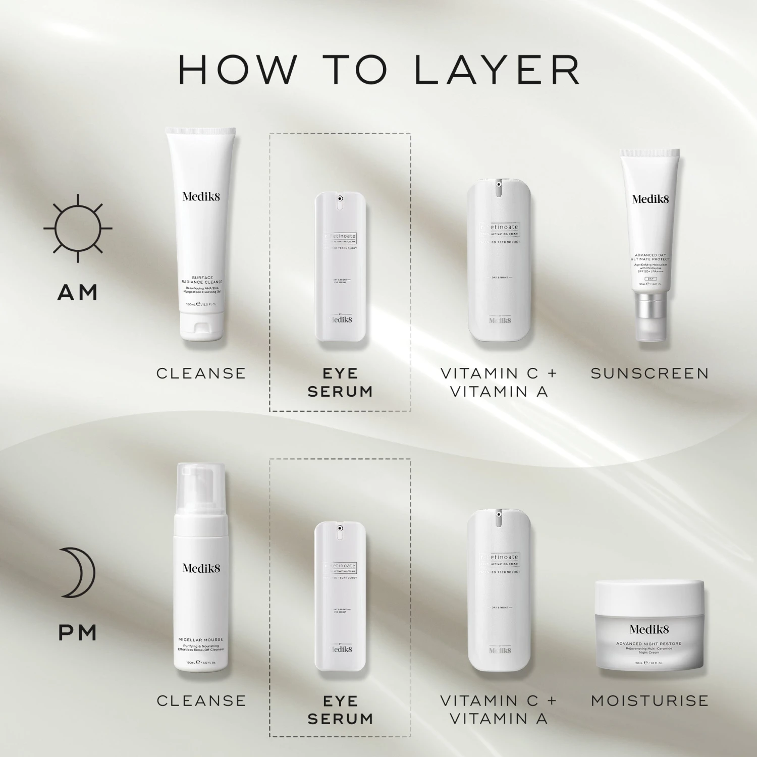 Dramatically fade the look of fine lines and wrinkles around the eyes with r-Retinoate Day & Night Eye Serum. This indulgent, eye-specialist serum is powered by Medik8-exclusive encapsulated retinyl retinoate – proven to be 8x more powerful than standard retinol* in delivering age-defying benefits both day and night. This innovative formula not only smooths the look of eye contours, but also visibly improves puffiness and dark circles while remaining gentle on the delicate under eyes. The result? A visibly brighter, smoother and more awakened eye area.